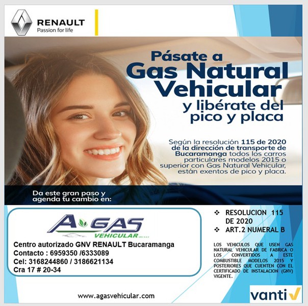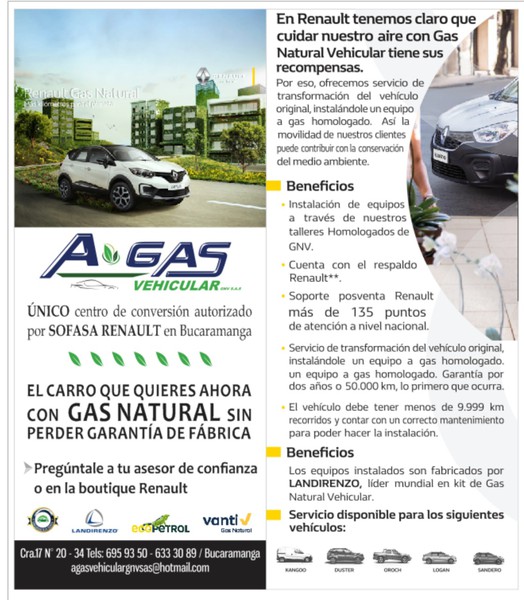 A GAS VEHICULAR GNV S.A.S. es una empresa legalmente constituida certificada en procesos de conversión a gas natural comprimido para uso vehicular. Contamos con el aval y la acreditación de VANTI GAS NATURAL como aliado dentro del proceso de calidad para la conversión de vehículos a gas natural. Somos el único centro de conversiones en Bucaramanga autorizado por sofasa-Renault para instalar equipos LANDIRENZO con garantía de fábrica en vehículos 0 kilómetros y usados que estén dentro del período de garantía.